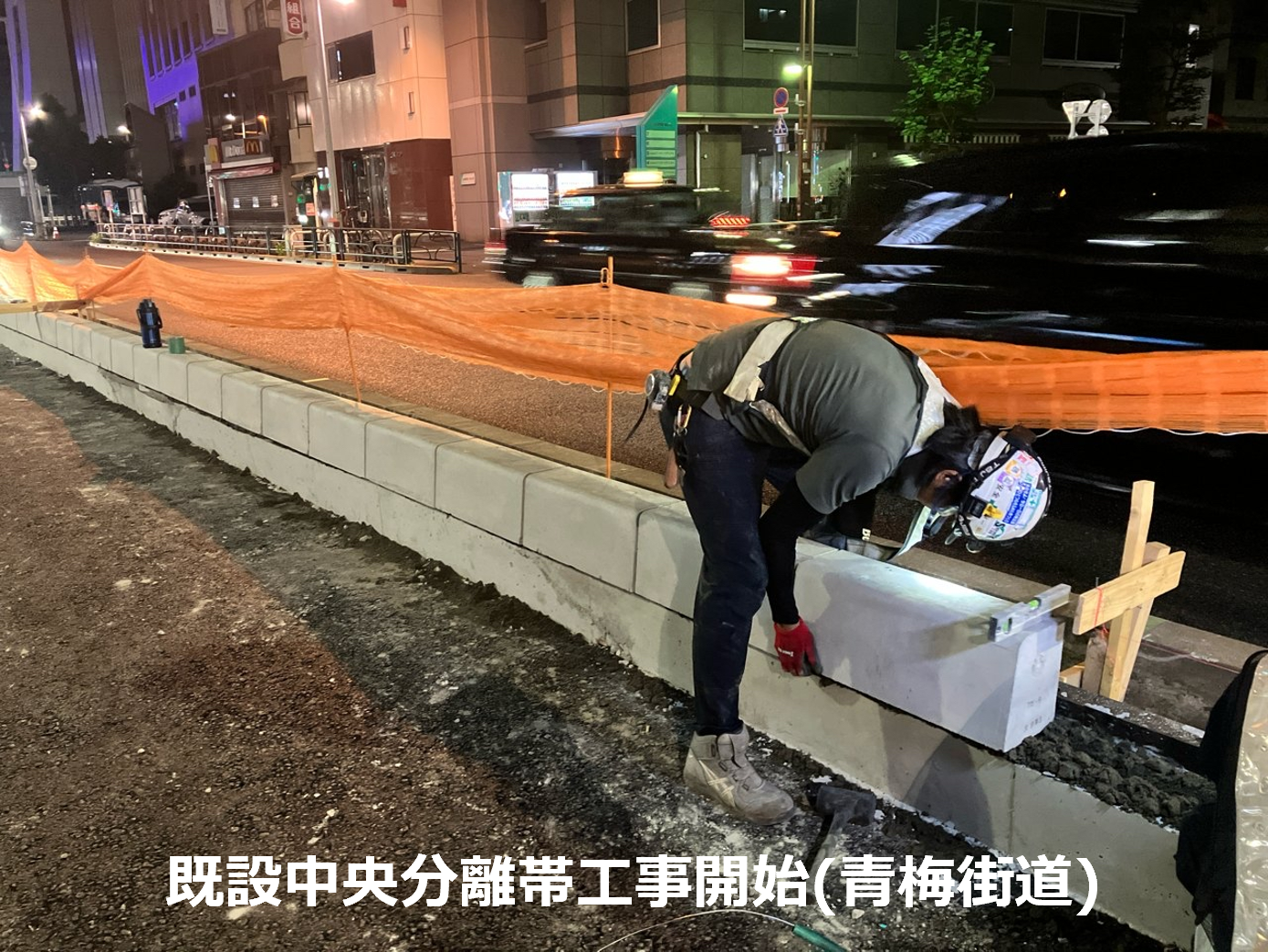 ・中央分離帯(青梅街道)の改良工事に着手しました。