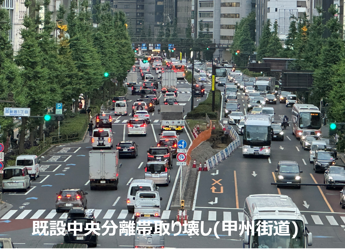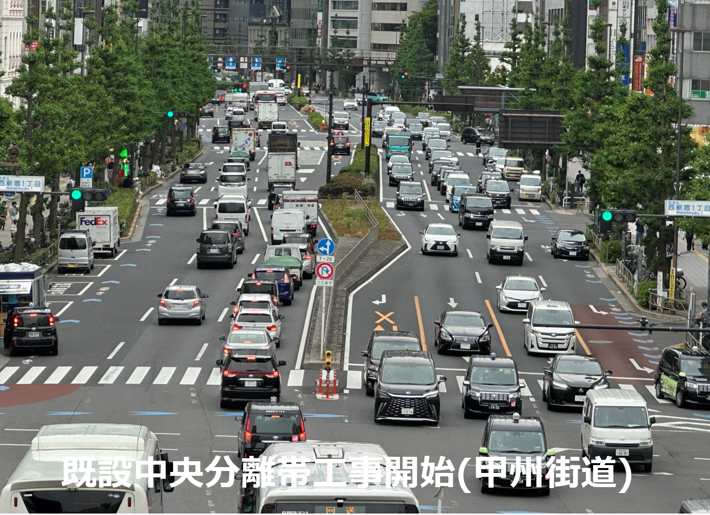 ・中央分離帯(甲州街道)の改良工事に着手しました。
